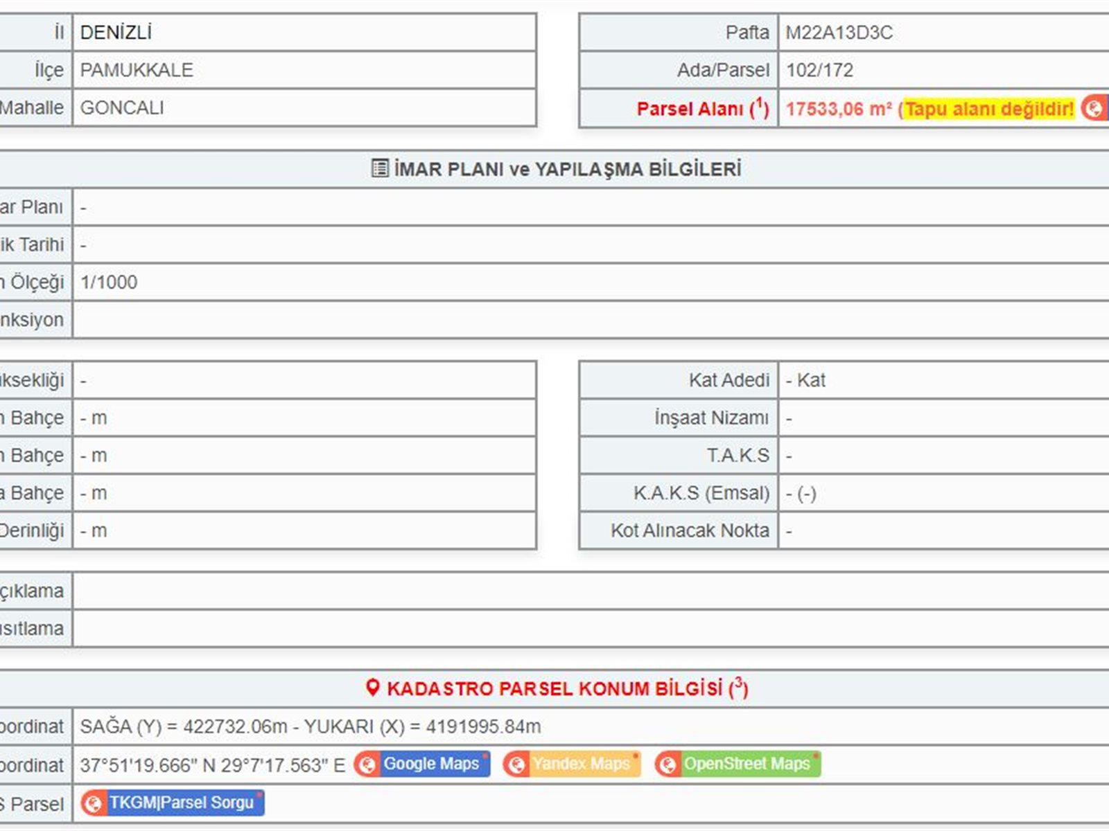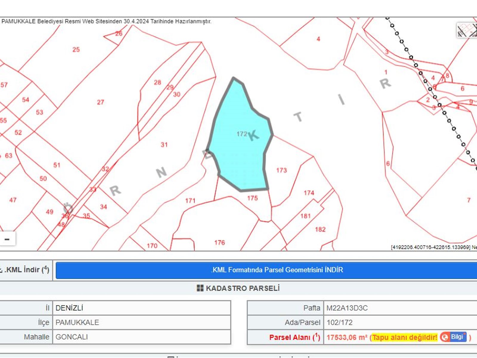 Pamukkale / Goncalı / 102 Ada 172 Parsel
